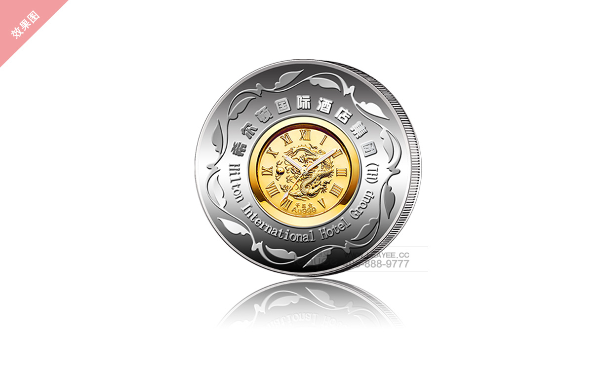 设计方案: 酒店创造“宾至如归”的文化氛围,注重企业员工礼仪的培养,并通过服务人员的“微笑服务”体现出来。客户在店一分钟,我们微笑一分钟,将纯金打造的时钟镶嵌在银币之中,在褒奖不断兢兢业业为希尔顿的发展做贡献的职务人员的同时,更是时刻提醒着时时微笑服务的酒店文化理念。而后才有了我们今天不断发展的成就。