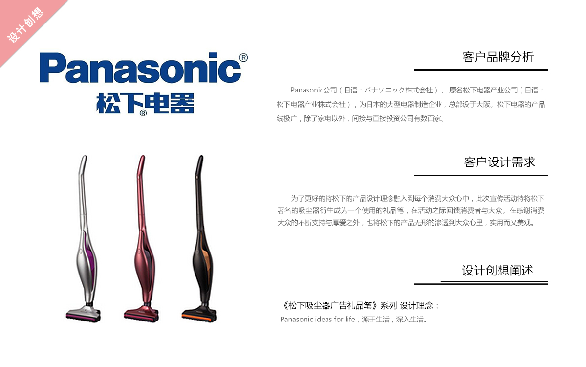 设计方案: 松下吸尘器品牌衍生活动礼品笔