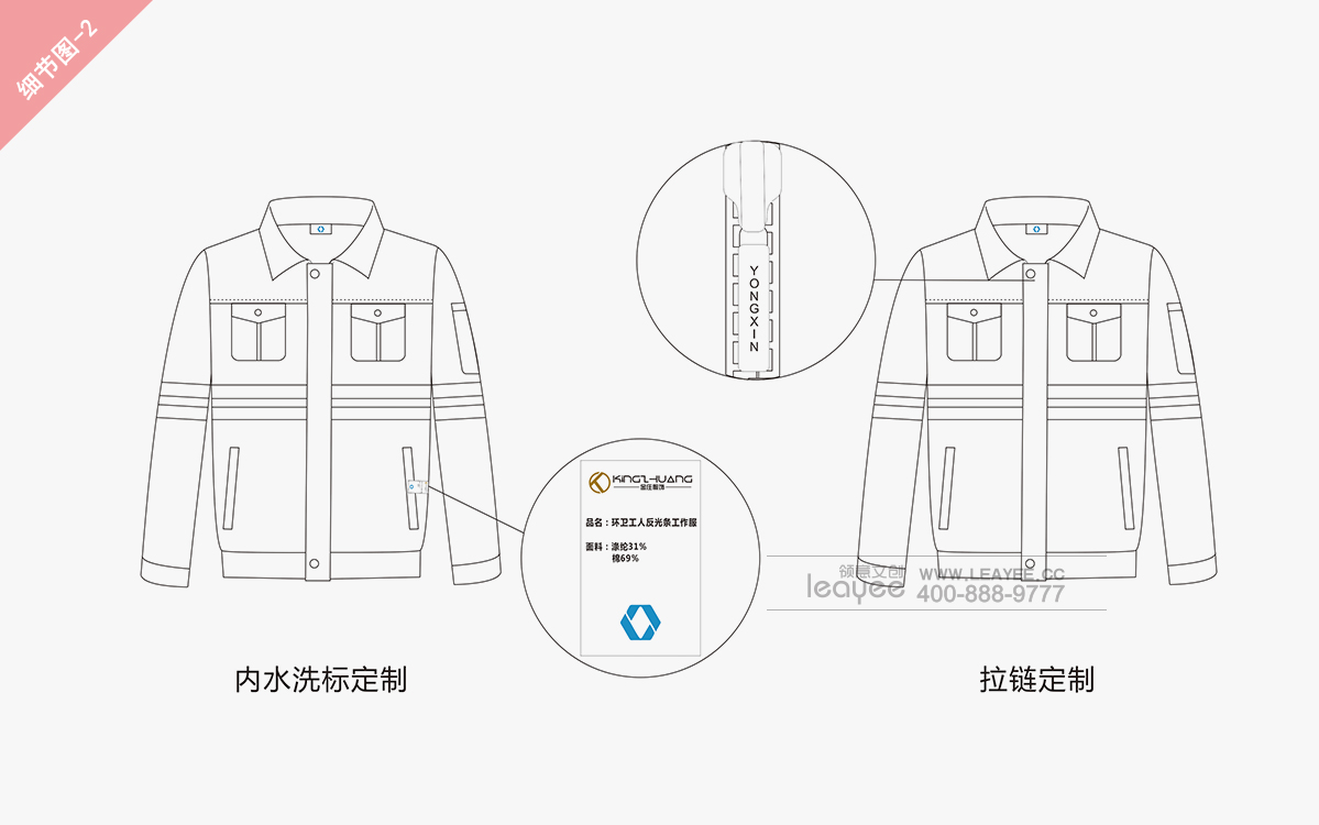 设计方案: 多年来,北京永新环保有限公司秉承改善人类环境之宗旨,倡导科技永新之精神,为广大辛勤劳动的环卫工人定制属于自己的环保反光服,明亮的色彩,是马路上的亮丽点。