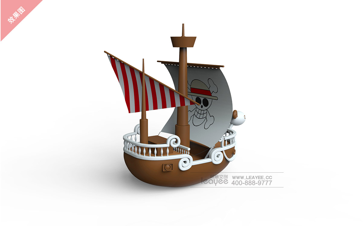 设计方案: 以此为衍生的黄金梅丽号塑胶玩偶模型,真实的诠释了经典的海贼王,草帽一伙第一艘正式挂上海贼旗的海贼船,也更好的诠释了黄金梅丽号的光荣使命,以及其所带来的深情友谊及伟大意义。